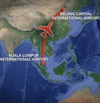 Pesawat yang terbang dari Kuala Lumpur menuju Beijing, China ini ditumpangi 239 orang, termasuk awak kapal di dalamnya.