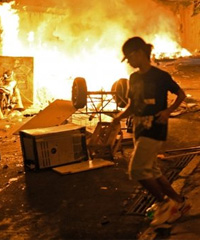 BBC, dalam kerusuhan hari Selasa seorang pengunjuk rasa tewas akibat terkena tembakan.