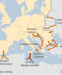 Sedangkan secara keseluruhan terdapat total tujuh rute sibuk yang biasanya dilintasi oleh para imigran untuk memasuki kawasan UE.