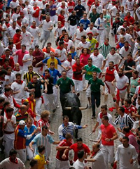 Tiga orang warga Spanyol mengalami luka-luka ketika bergabung bersama ribuan orang lainnya untuk melawan enam banteng petarung yang dilepaskan di jalan-jalan kota Pamplona dalam rangkaian penyelenggaraan festival San Fermin Spanyol pada Sabtu (12/7). Temukan berita-berita hangat terpercaya dari Kantor Berita Politik RMOL di Google News.