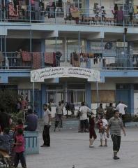 Gedung sekolah itu digunakan sebagai tempat pengungsian korban dari perang yang sudah berlangsung 23 hari terakhir.