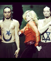 Madonna memposting foto penampilan dirinya bersama dengan dua penari pria bertelanjang dada di akun instagramnya. Dua penari pria itu menunjukkan simbol bintang Yahudi dan bulan sabit bintang Islam.