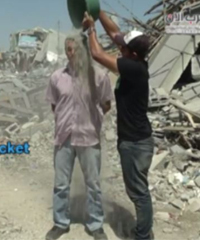 "Ice Bucket Challenge" tandingan yang dibuat warga Gaza bukanlah menggunakan air es seember, melainkan dengan menggunakan serpihan dan puing-puing kecil dari bangunan mereka yang hancur akibat terkena serangan Israel. Mereka mengumpulkannya dalam sebuah ember untuk kemudian disiramkan ke atas kepala.