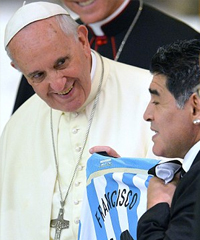 Daily Mail mengabarkan, Maradona bergabung dengan sejumlah bintang dan mantan bintang sepakbola lainnya seperti Carlos Valderrama, Roberto Baggio, Zinedine Zidane, Lionel Messi dan Andrea Pirlo di Vatikan.