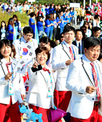 Kemudian para delegasi dari 45 negara baik atlet maupun stafnya akan mulai memasuki stadion satu per satu. Urutan masuknya delegasi ke stadion ditentukan berdasarkan alfabet dari nama resmi negara mereka. Korea Selatan sebagai tuan rumah, akan memasuki stadion paling terakhir.