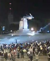 Russia Today menggambarkan, para aktivis itu bersorak ketika patung Lenin jatuh. Mereka mengambil puing-puingnya sebagai souvenir.