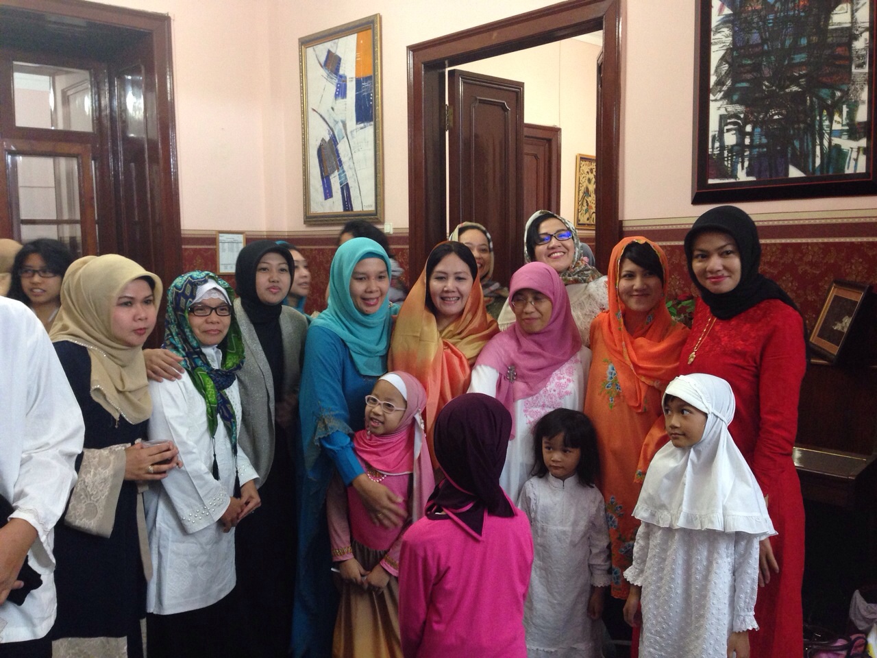 Seusai sholat bersama, kehangatan kebersamaan masyarakat semakin terasa dengan bersalam-salaman dan bersilaturahmi. Selanjutnya, acara makan bersama dengan sajian kuliner khas Indonesia seperti ketupat, ayam opor, gulai, telur balado, kue kecil dan beragam makanan khas Indonesia lainnya.