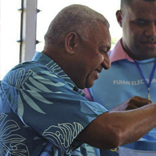 "Saya, atas nama pemerintah dan rakyat Republik Fiji, memberikan selamat yang tulus kepada Anda dalam kemenangan pemilu presiden," Bainimarama mengatakan, seperti dimuat