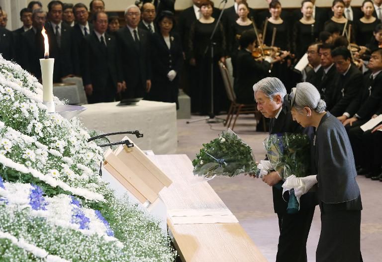 AFP.Kaisar Akihito dan Permaisuri Michiko juga dilaporkan turut menghadiri upacara peringatan untuk memimpin doa.