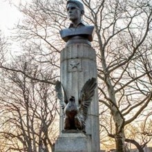 Patung tersebut ditempatkan di atas pilar batu yang merupakan bagian dari monumen tersebut.