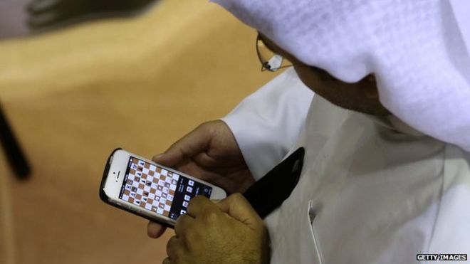 "Dia membantah itu, tapi dalam smartphone itu login ke halaman Facebook-nya dan ada aplikasi catur yang tengah berjalan," kata direktur turnamen Yahya Mohamed Saleh kepada