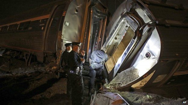 Sekitar 10 gerbong kereta Amtrak yang melayani perjalanan dari Washington ke New York keluar jalur saat melintas di pinggiran Philadelphia, tak lama setelah meninggalkan stasiun utama.