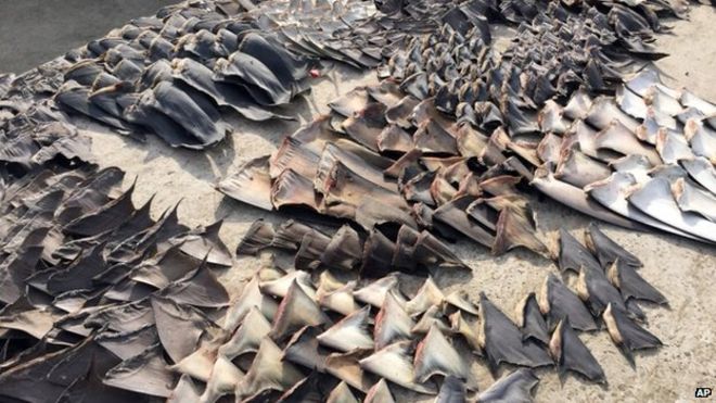 Sirip-sirip hiu itu ditemukan setelah kepolisian Ekuador melakukan penggerebekkan ke sembilan lokasi di kota pelabuhan Manta.
