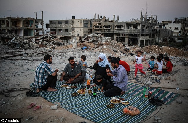 Daily Mail (Sabtu, 20/6) menggambarkan, Muslim Gaza terpaksa menjalani puasa di tengah puing-puing rereuntuhan bagunan. Sebagian besar wilayah mereka hancur dan rusak akibat serangan udara dari Israel dalam konflik 50 hari yang terjadi pertengahan tahun lalu.