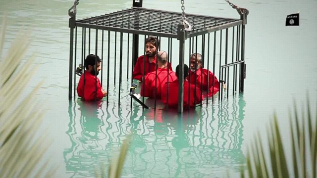 Dalam video tersebut, ISIS tampak mengeksekusi lima orang tawanan yang diduga merupakan mata-mata dengan cara menenggelamkan mereka. Tampak lima orang pria yang mengenakan jumpsuit orang dimasukkan ke dalam sebuah kerangka besi. Kelimanya tampak berdiri dengan kedua tangan diborgol.