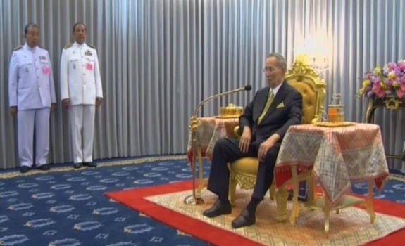 Namun awal pekan ini sang Raja muncul dalam siaran televisi saat mengambil sumpah puluhan hakim di sebuah ruang tamu di rumah sakit Siriraj Bangkok di mana ia dirawat.