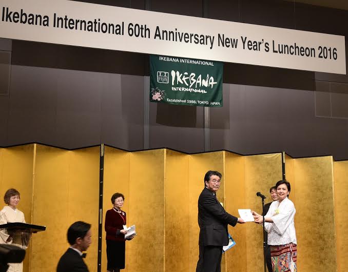 Penyerahan donasi yang dilakukan dengan kerjasama Ikebana Chapter Tokyo itu dilakukan bersamaan dengan acara Ikebana International 60th Anniversary New Year’s 2016 yang diselenggarakan di Hotel Palace, Tokyo.
