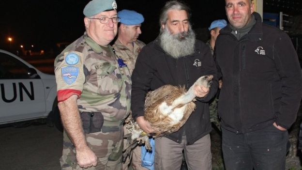 "Dalam operasi rahasia dengan Lebanon dan dengan bantuan besar dari pasukan PBB dan unit penghubung PBB, Badan Lingkungan Hidup Israel dan Otoritas Taman mampu mengembalikan burung pemakan bangkai yang tertangkap beberapa hari yang lalu oleh penduduk desa Bint Jbeil, Lebanon," begitu pernyataan dari Israel seperti dimuat
