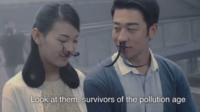 Dalam film itu digambarkan parade sejumlah orang China yang menumbuhkan bulu hidung mereka hingga keluar dari hidung. Tujuannya adalah agar bisa menyaring kabut asap dalam kehidupan sehari-hari.