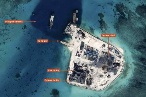 Pada pulau-pulau buatan itu, China meningkatkan akses ke pos-pos yang menjadi pelabuhan buatan untuk memungkinkan akses untuk kapal yang lebih besar.