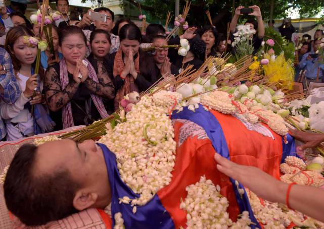Ia tewas setelah ditembak saat tengah minum kopi di sebuah toko di ibukota Phnom Penh sehari sebelumnya.