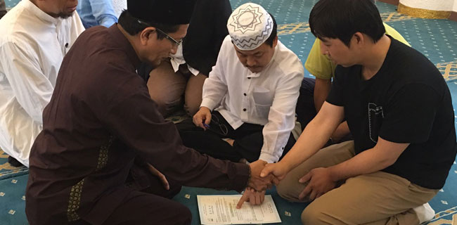 Setelah salat dzuhur di masjid al-Fatah Busan, Korsel, seorang WN Korea datang dan menyatakan ingin masuk Islam. Setelah berbicara dengan imam masjid, Yaser Lee, disepakati bahwa pengislaman yang bersangkutan akan dilakukan langsung di tempat.