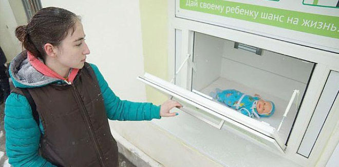 Dengan kotak bayi, ibu yang putus asa atau tidak menginginkan bayi yang mereka lahirkan bisa meninggalkan bayi mereka di kotak tersebut. Di Rusia, ada sekitar 20 kotak bayi yang ditempatkan di sejumlah wilayah.