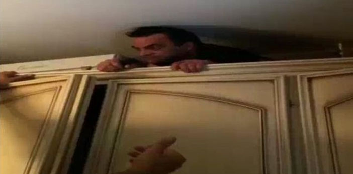 Ia bersembunyi di dalam kompartemen rahasia yang berada di antara kamar tidur dan kamar mandi.