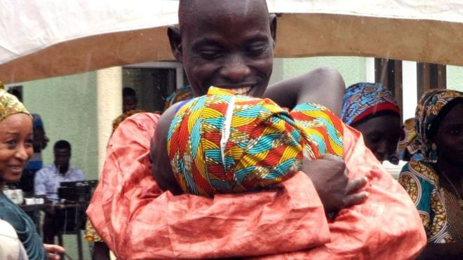 Dalam upacara serah terima di Abuja akhir pekan kemarin, suasana haru kental terasa saat para siswi dikembalikan dari pemerintah ke pihak keluarga.