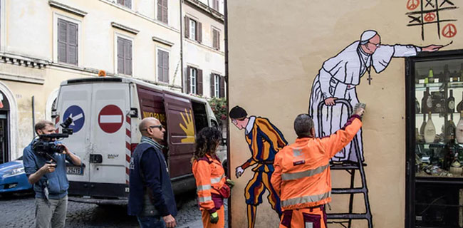 Namun hanya selang beberapa jam, sebuah van merah bertuliskan "Squad kesopanan dari Roma" datang dan membawa pekerja sanitasi kota. Mereka menghapus mural. Langkah tersebut diambil karena menilai mural sebagai hal yang tidak pantas.