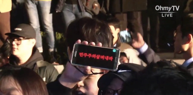 Di tengah suhu dingin yang meliputi Semenanjung Korea, demonstran berkumpul di pusat Seoul, hanya beberapa kilometer dari Blue House, meneriakan yel-yel "Park Geun Hye Turun" dan "Impeachment".