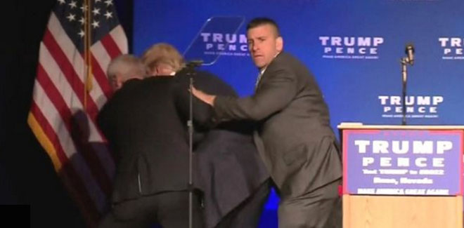 Trump berhenti berkampanye di Reno setelah melihat sesuatu yang mencurigakan di auditorium.
