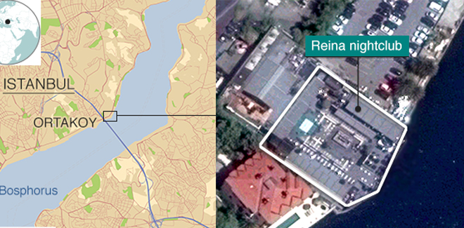 Penyerang yang maish belum teridentifikasi itu menembaki orang-orang di dalam klub malam Reina di Ankara secara acak. Usai melakukan aksinya, ia pergi melarikan diri.