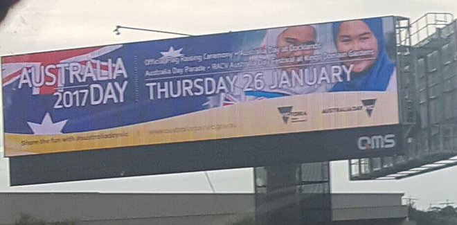 Sebuah billboard untuk perayaan Australia Day yang menampilkan dua gadis muda mengenakan hijab diturunkan di Melbourne setelah ada ancaman yang dibuat untuk perusahaan media yang merancang itu. Temukan berita-berita hangat terpercaya dari Kantor Berita Politik RMOL di Google News.