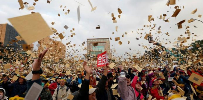 "Kami memprotes pemerintah Tsai," para pengunjuk rasa meneriakkan, menyebut rencana reformasi "Pemerintah intimidasi" dan "tirani mayoritas."