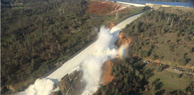 Hal itu berpotensi membuat bendungan runtuh dan melepaskan banjir ke wilayah penduduk di sepanjang Sungai Feather.