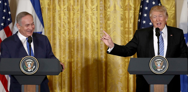 Berbicara pada konferensi pers bersama dengan Perdana Menteri Israel, Benjamin Netanyahu, Trump tidak menutup kemungkinan solusi dua-negara.