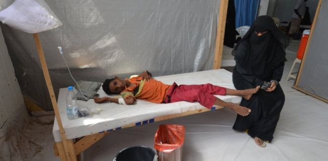 Rumah sakit di kota yang dikendalikan oleh pemberontak Houthi, penuh dengan pasien kolera.
