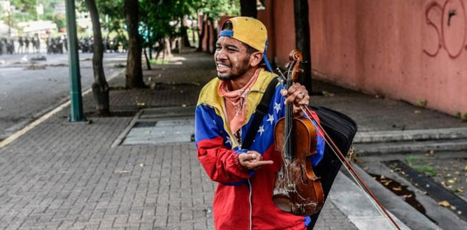 Ia adalah Wuilly Arteaga, pemain biola atau violinis yang telah menjadi perlengkapan reguler di demonstrasi jalanan di negara itu. Ia kerap memainkan nada klasik dengan tenang di tengah kekcauan.