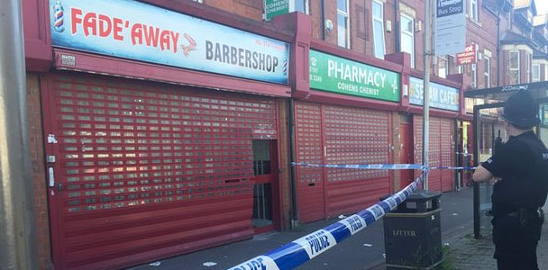 Pemilik toko perangkat keras di Princess Road, dekat dengan barber shop di mana tukang cukur yang diburu biasa bekerja, Byron Gibbs, mengatakan bahwa dia telah melihat Salman Abedi, pelaku bom bunuh diri di Manchaster Arena di tukang cukur tetangga yang sedang digeledah.