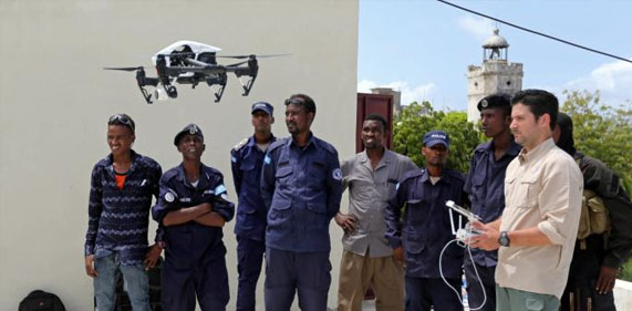 Polisi Somalia menerima lima pesawat tak berawak, beberapa di antaranya memiliki kemampuan penglihatan infra merah atau malam hari, dari Brett Velicovich, yang bertugas dengan fitur militer AS.