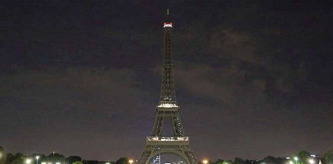 Paris secara teratur meredupkan lampu Menara Eiffel, lambang kota, untuk menunjukkan solidaritasnya dengan korban serangan teror.