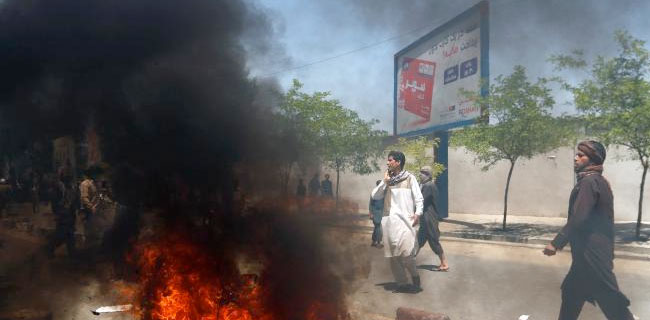 Aksi unjuk rasa berlangsung dengan ricuh di mana terjadi bentrok antara pengunjuk rasa dengan polisi anti huru hara di Kabul.