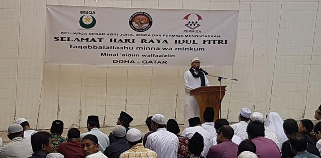 Imbauan itu disampaikan Dubes dalam sambutan tertulis di tengah rangkaian salat Idul Fitri yang diikuti sekitar seribu Warga Negara Indonesia (WNI) di Doha, Qatar, di Lapangan Grand Hamad Stadium, Al Arabi Sports Club (Minggu, 25/6).
