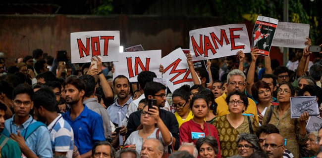 Para demonstran melambaikan spanduk "Not in My Name" dan poster "Stop Cow Terrorism" di setidaknya 10 kota, termasuk Mumbai, Kolkata dan New Delhi, pada hari Rabu (28/6). Para intelektual dan aktivis bergabung dengan keluarga korban pembunuhan. Demikian dilaporkan
