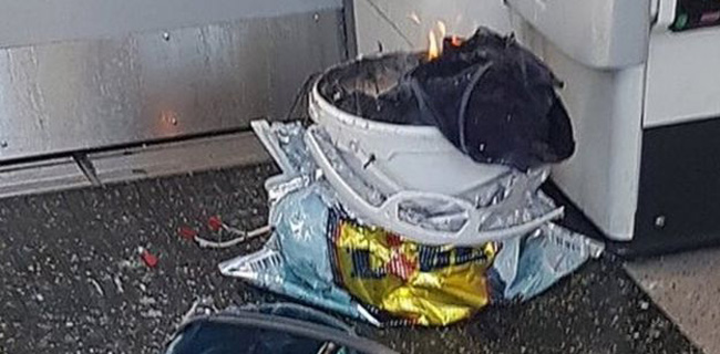 Sebuah video amatir dari penumpang menunjukkan ember putih yang terbungkus tas belanja terbakar, namun tidak menunjukkan kerusakan yang luas pada bagian dalam gerbong Tube.