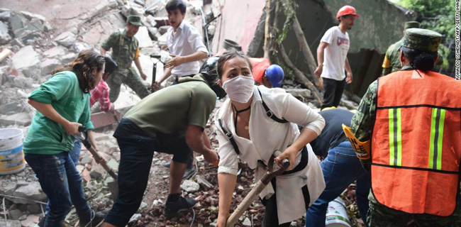 CNN mengabarkan, di Mexico City saja jumlah korban meninggal dunia mencapai 216 orang, termasuk anak-anak sekolah dasar yang sekolahnya ambruk.