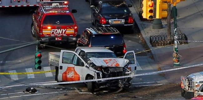 Insiden itu terjadi ketika seorang sopir truk tiba-tiba saja membelokkan truk yang dibawanya ke kerumunan orang yang berada di jalur sepeda. Komisaris New York Police Department (NYPD) James O'Neill menjelaskan bahwa truk tersebut kemudian menyeret dejumlah pejalan kaki dan pesepeda di lokasi serta menabrak bus sekolah sebelum akhirnya berhenti.