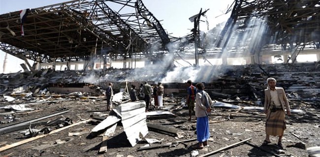 Al Jazeera, bom berdatangan layaknya hujan di sejumlah lingkungan di ibukota pada hari Minggu (5/11). Serangan tersebut menargetkan sebuah panggung di alun-alun al-Sabeen yang digunakan oleh pemberontak Houthi untuk parade militer, istana kepresidenan terdekat, markas keamanan nasional dan kementerian dalam negeri.