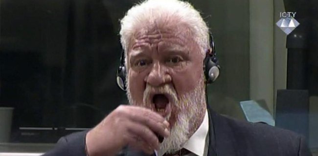 Sebelum melakukan aksinya, pria 72 tahun itu berteriak bahwa dirinya bukanlah penjahat perang. Rekaman menunjukkan Praljak berdiri sebelum menengadahkan kepalanya dan menelan sesuatu dari gelas kecil yang ia sebut racun.